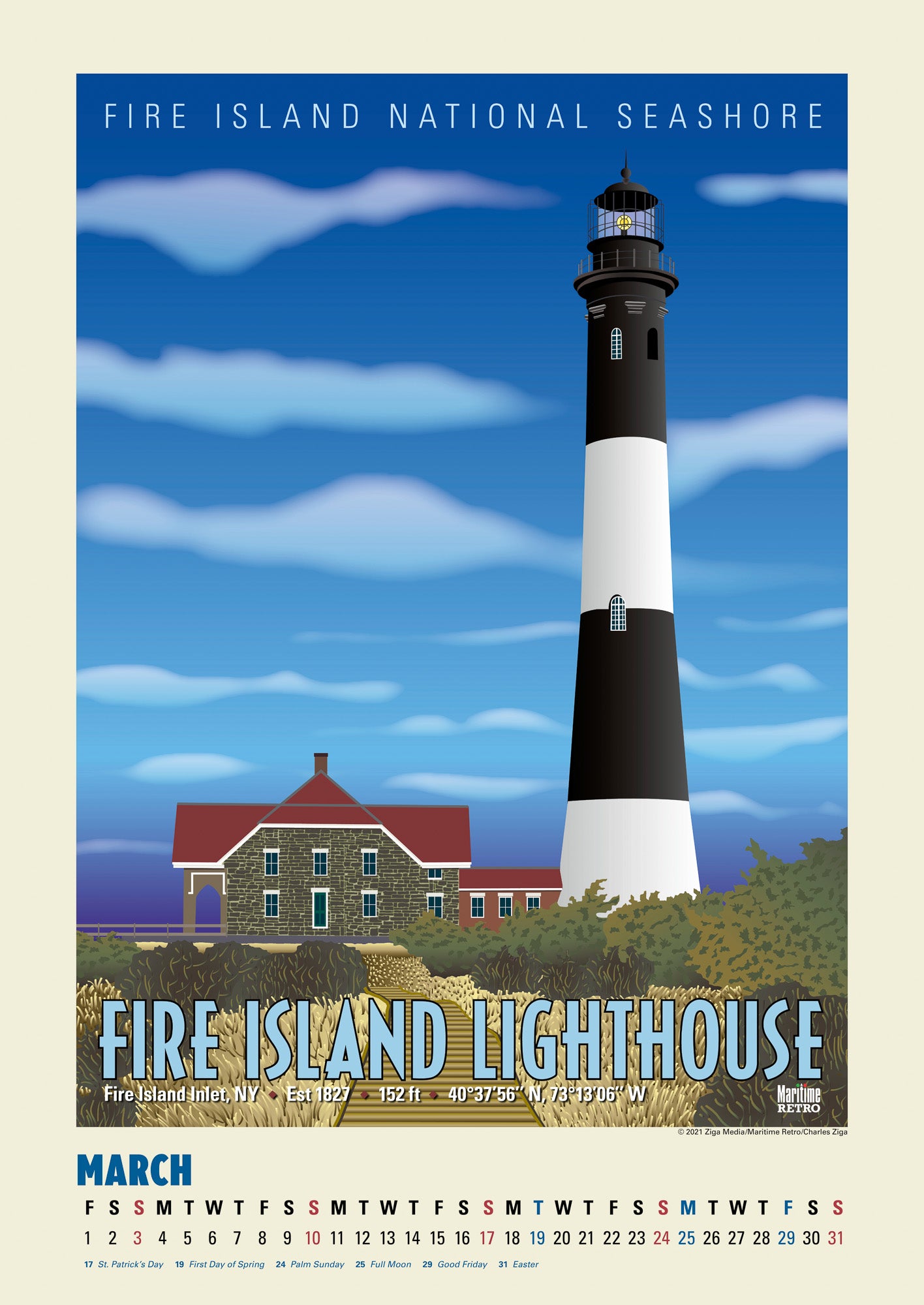 Atlantic Coast Lighthouses Oversize Wall Calendar 2024, 13.38” x